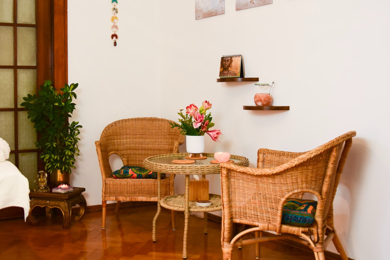 Freue dich außerdem auf aromatischen Tee, kleine Snacks und eine angenehme Atmosphäre in einer kleinen Runde von maximal 4 Personen.